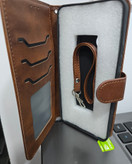 درب این کیف به صورت ۳۶۰ باز می شود و هنگام استفاده از گوشی خود، هیچگونه مزاحمتی را از این بابت نخواهید داشت. از دیگر مواردی که می توان به آن اشاره کرد، جاکارتی این کیف است که روی درب آن (قسمت داخلی) جای گذاری شده است و به راحتی می توانید از آن استفاده کنید، برای مثال کارت اعتباری، عابر بانک و... خود را درون آن گذاشته و به راحتی مورد استفاده قرار دهید. به علت ضخامتی هم که این جای کارت دارد، نگران تأثیرات منفی کارت ها و موبایلتان بر هم دیگر نخواهید بود.