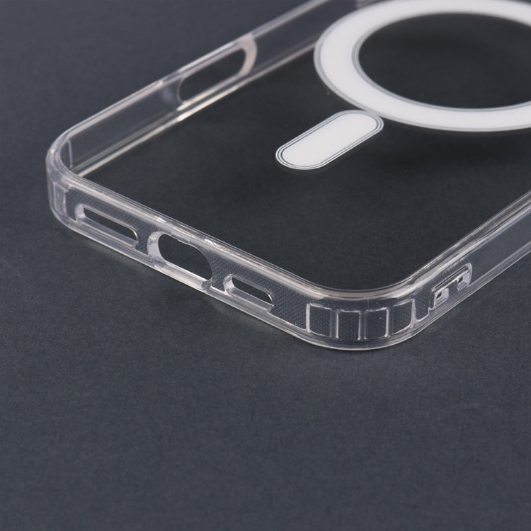 قاب ضد ضربه مگ سیف Clear Case Magnetic ضمن محافظت از تلفن همراه، سازگار با شارژر MagSafe نیز بوده و کاربر را برای استفاده از این نوع شارژر با مشکل عدم اتصال آهن ربا روبه رو نخواهد کرد. طراحی شفاف این قاب سبب شده ظاهر اصلی گوشی حفظ شده و تنها در برابر صدمات احتمالی و خط و خش از گوشی شما محافظت شود. لازم به ذکر است محل قرارگیری پورت ها و دوربین در این قاب به خوبی برش خورده است تا در مواقع نیاز به آسانی به آنها دسترسی داشته باشید.
