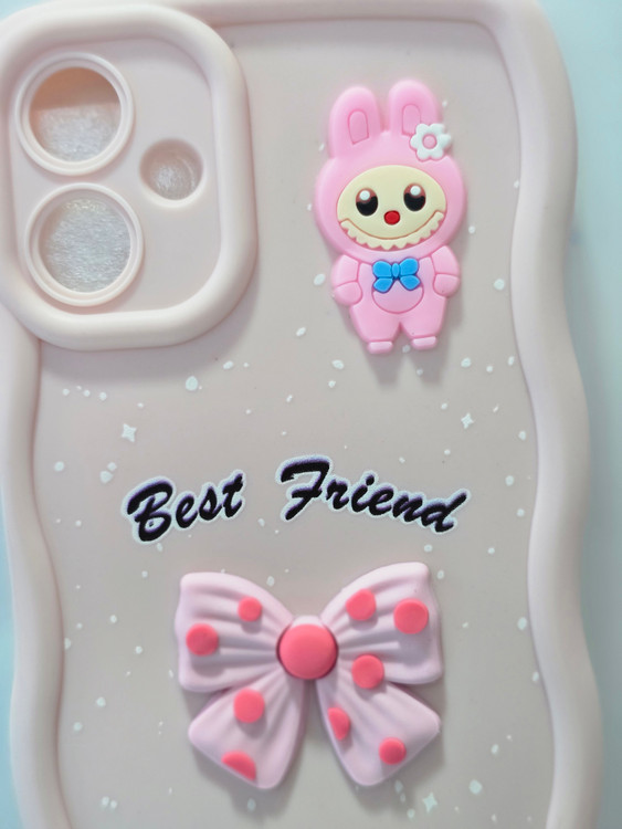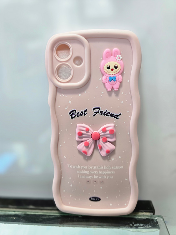 قاب سیلیکونی موج دار طرح لبوبو و پاپیون برجسته محافظ لنزدار Samsung A06