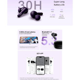 هندزفری بلوتوثی کیو سی وای مدل T13X از فناوری TWS پشتیبانی می کند از این رو می توان از یک گوشی به صورت تکی هم استفاده کرد و اگر گوشی دوم در کیس شارژ باشد یا گم شود مشکلی وجود نخواهد شد. هندزفری QCY T13X به بلوتوث نسخه 5.3 به منظور برقراری ارتباط بی سیم مجهز شده که تا برد 10 متری خود را پوشش می دهد. همچنین در کنار برقراری ارتباط بی سیم پایدار از حالت Low Latency نیز پشتیبانی می کند و تاخیر صدا را تا 0.068 ثانیه کاهش می دهد که هنگام انجام بازی های معمولی واقعا به چشم می آید.