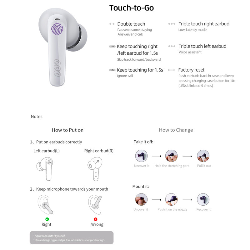 پنل لمسی چند منظوره از دیگر ویژگی های کاربردی هندزفری QCY T13X محسوب می شود که توسط آن می توانید موسیقی را متوقف یا پخش کرده، به آهنگ قبلی و بعدی رفته، تماس های دریافتی را رد کرده، حالت Low Latency را فعال کنید، حتی به دستیار صوتی دسترسی داشته باشید و در نهایت هندزفری را Reset کنید. در نهایت باید بگوییم که هندزفری QCY T13X از هر دو سیستم عامل اندروید و iOS پشتیبانی می کند، اما حالت Pop-Up تنها در سیستم عامل اندروید پشتیبانی خواهد شد.