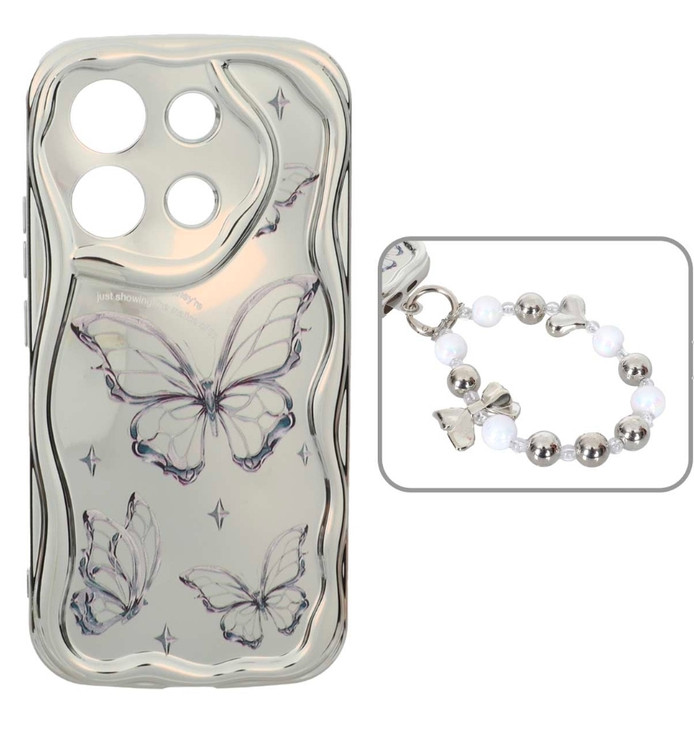 قاب کنگره ای آینه ای طرح دار با آویز مچی مرواریدی Xiaomi Redmi Note 13 4G -